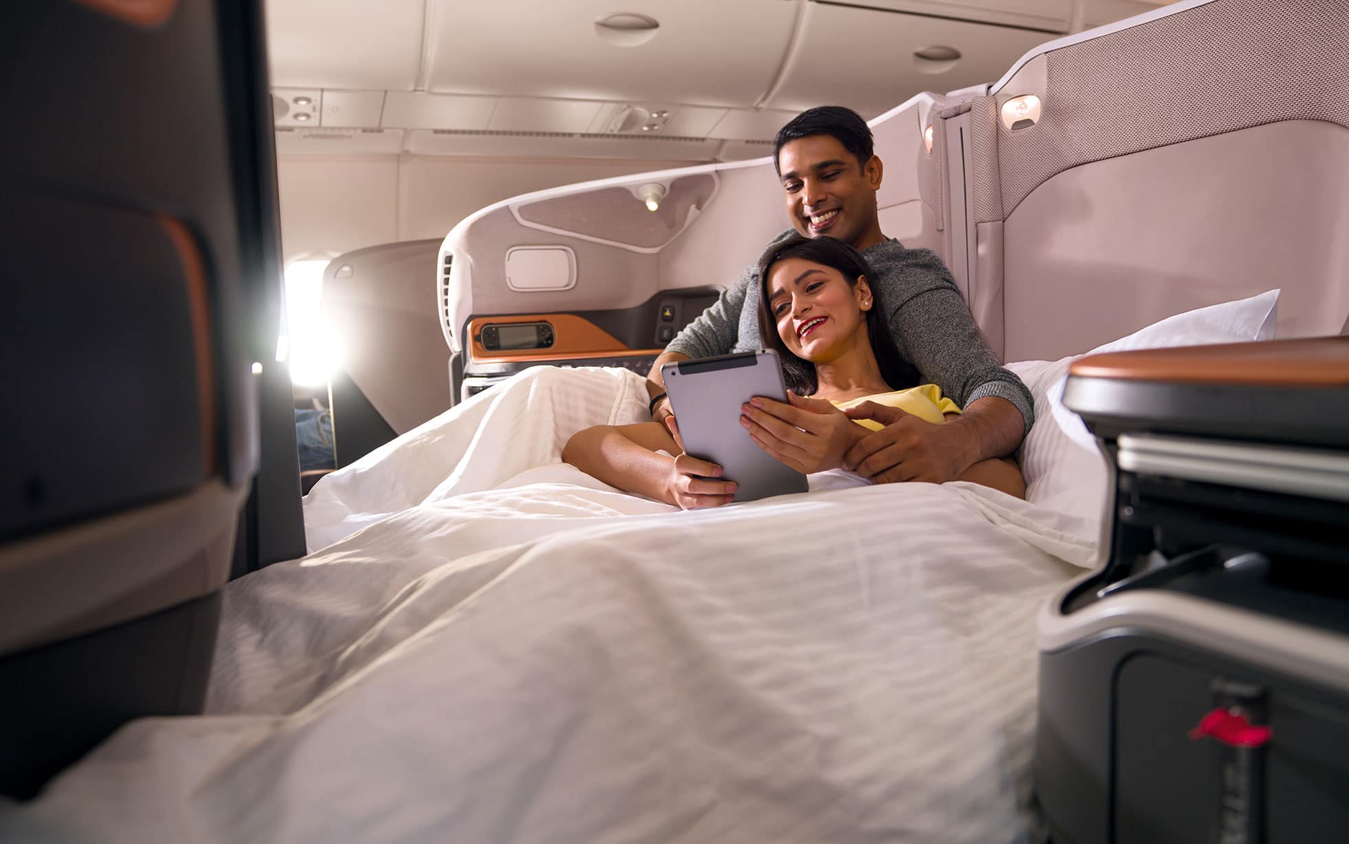 Comme dit en prérequis, le luxe octroyé au passager en classe affaires n’est pas le même chez tous les transporteurs aériens. C’est le cas des sièges rabattables en lit, qui ne sont pas encore une offre standardisée pour tous les types d’aéronefs.