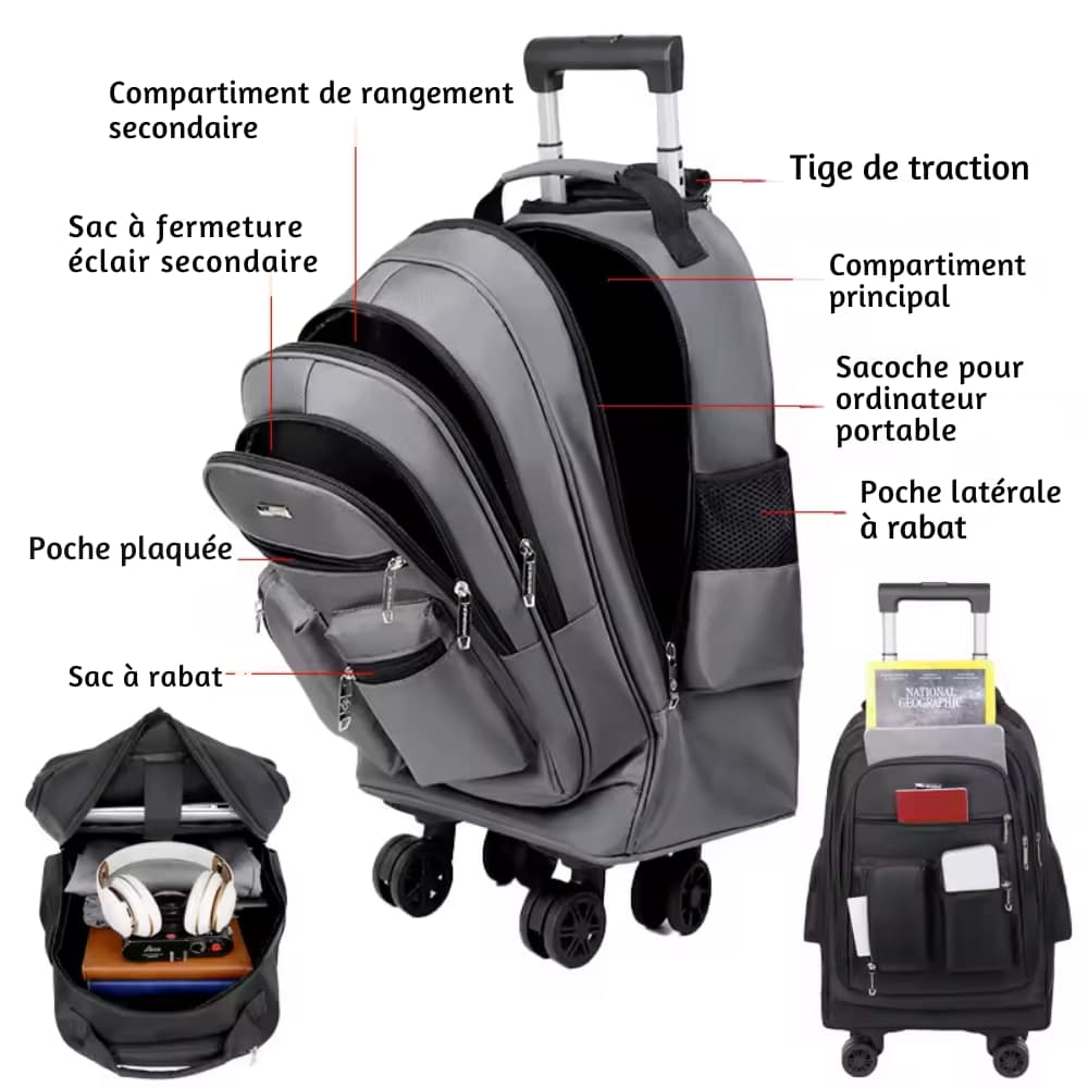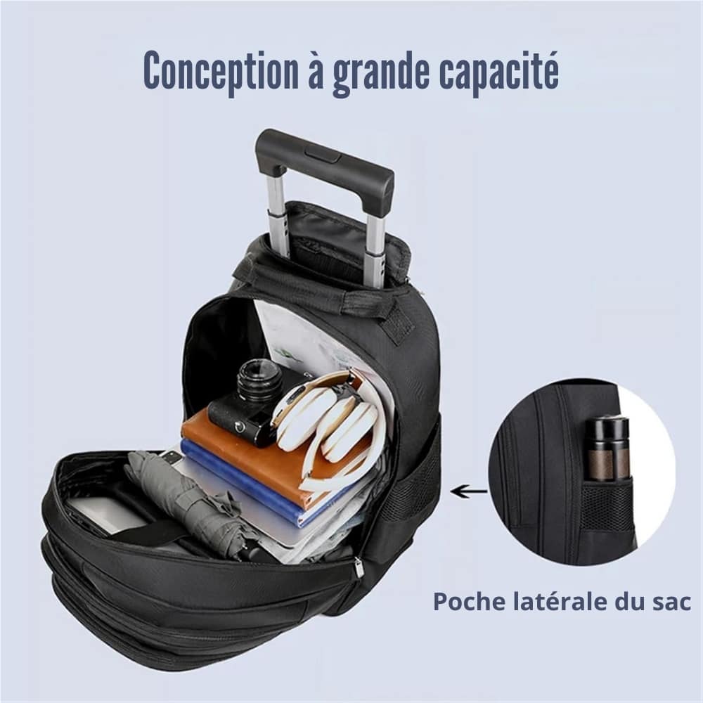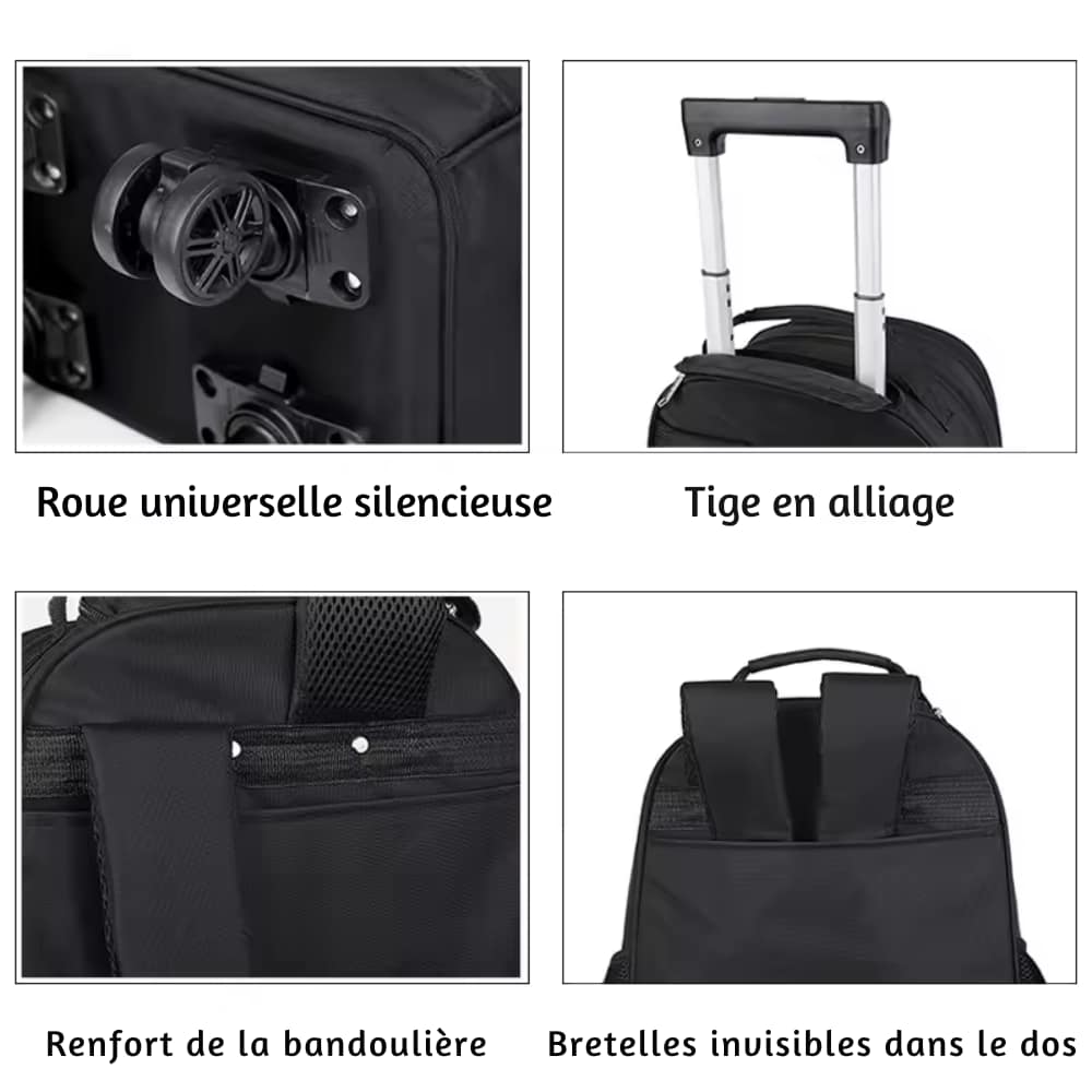 Mode de transport Sac à dos ou sac à roulettes (double mode)