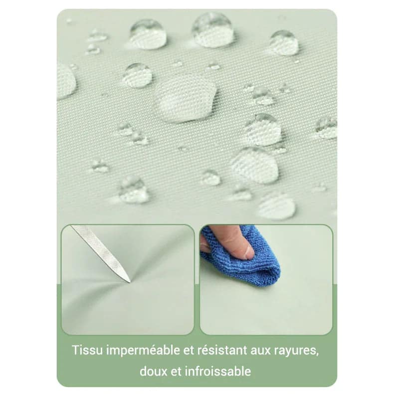 Conçu avec un tissu imperméable haute performance, il repousse efficacement l’eau et résiste à l’usure du quotidien. Plus de stress en cas d’éclaboussures : l’entretien est ultra-facile.