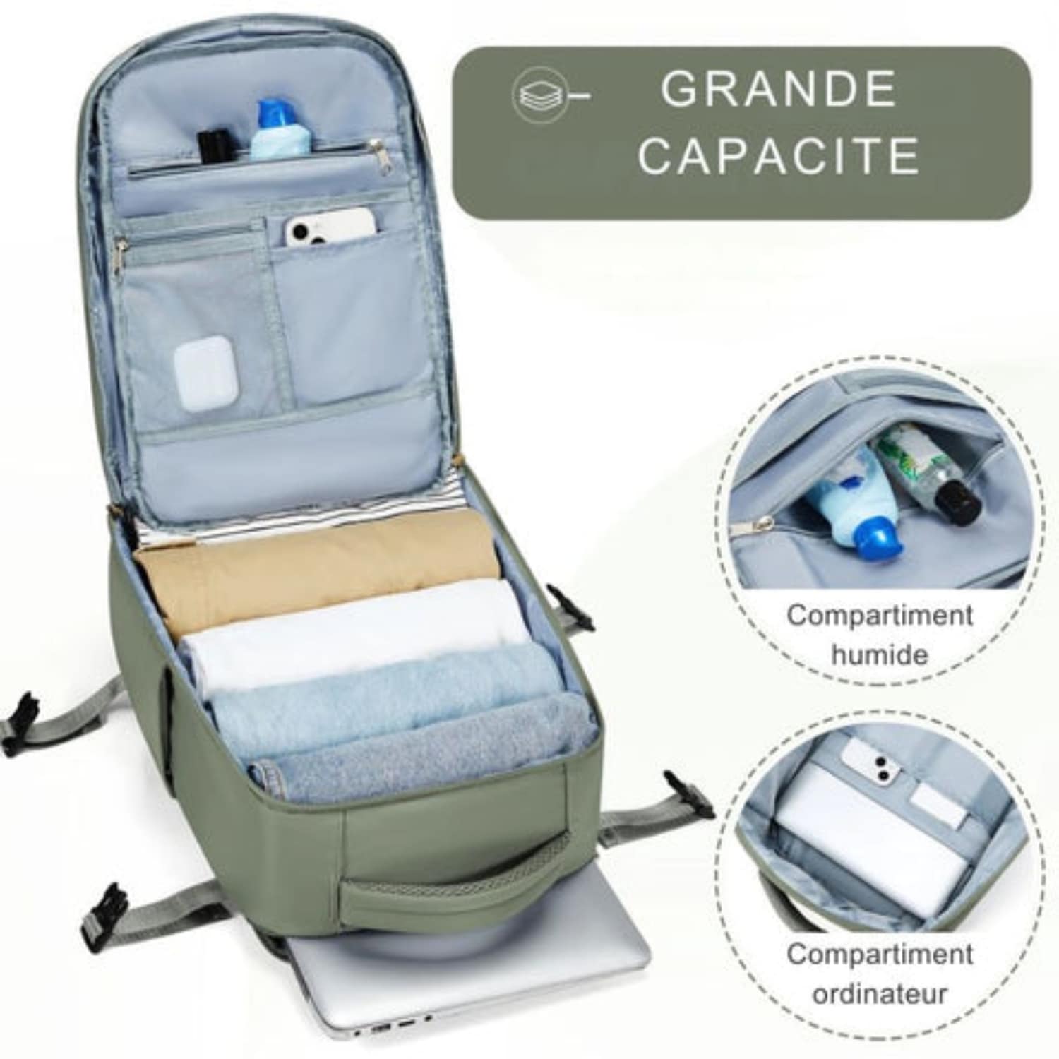 Compatibilité bagage cabine Conforme aux dimensions des compagnies comme EasyJet, Ryanair, Wizz Air, etc.
