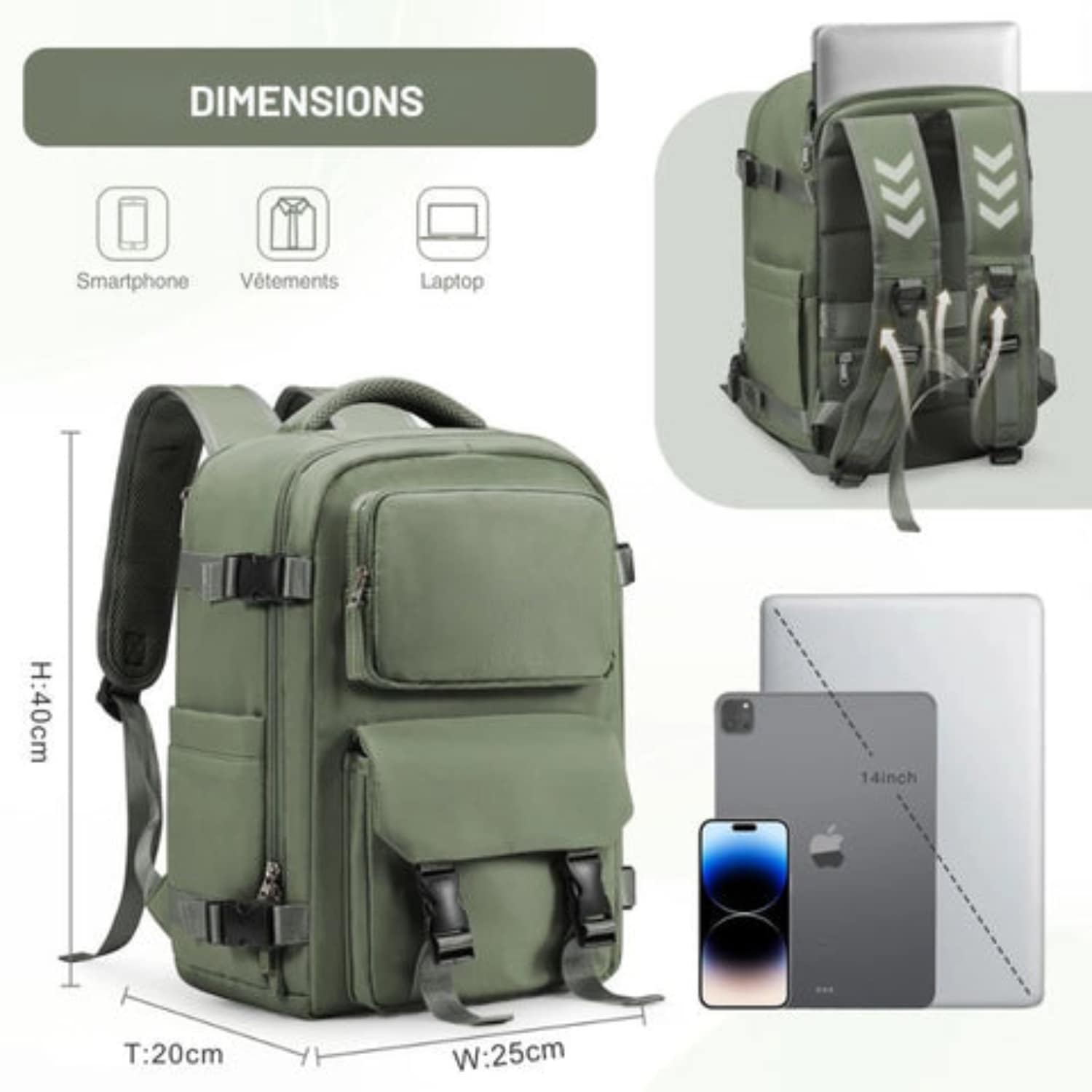 Ne laissez plus vos bagages devenir un fardeau ! Ce sac est conçu pour offrir à la fois praticité et confort, avec de nombreux compartiments pour vos effets personnels et appareils électroniques. Voyagez intelligemment, sans tracas et sans coûts cachés. Grâce à ses poches multiples et son compartiment principal spacieux, vous pourrez ranger vos affaires personnelles de manière efficace, tout en ayant un accès facile et rapide à ce dont vous avez besoin.
