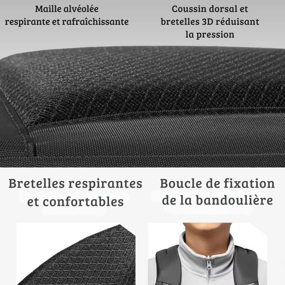 Conçu pour le voyage, il intègre une sangle à bagages pratique pour le fixer facilement à votre valise, vous offrant plus de confort en déplacement. Ses poches latérales permettent de garder à portée de main vos indispensables comme une bouteille d’eau ou un parapluie. Un compagnon fiable, pratique et rassurant au quotidien comme en voyage.