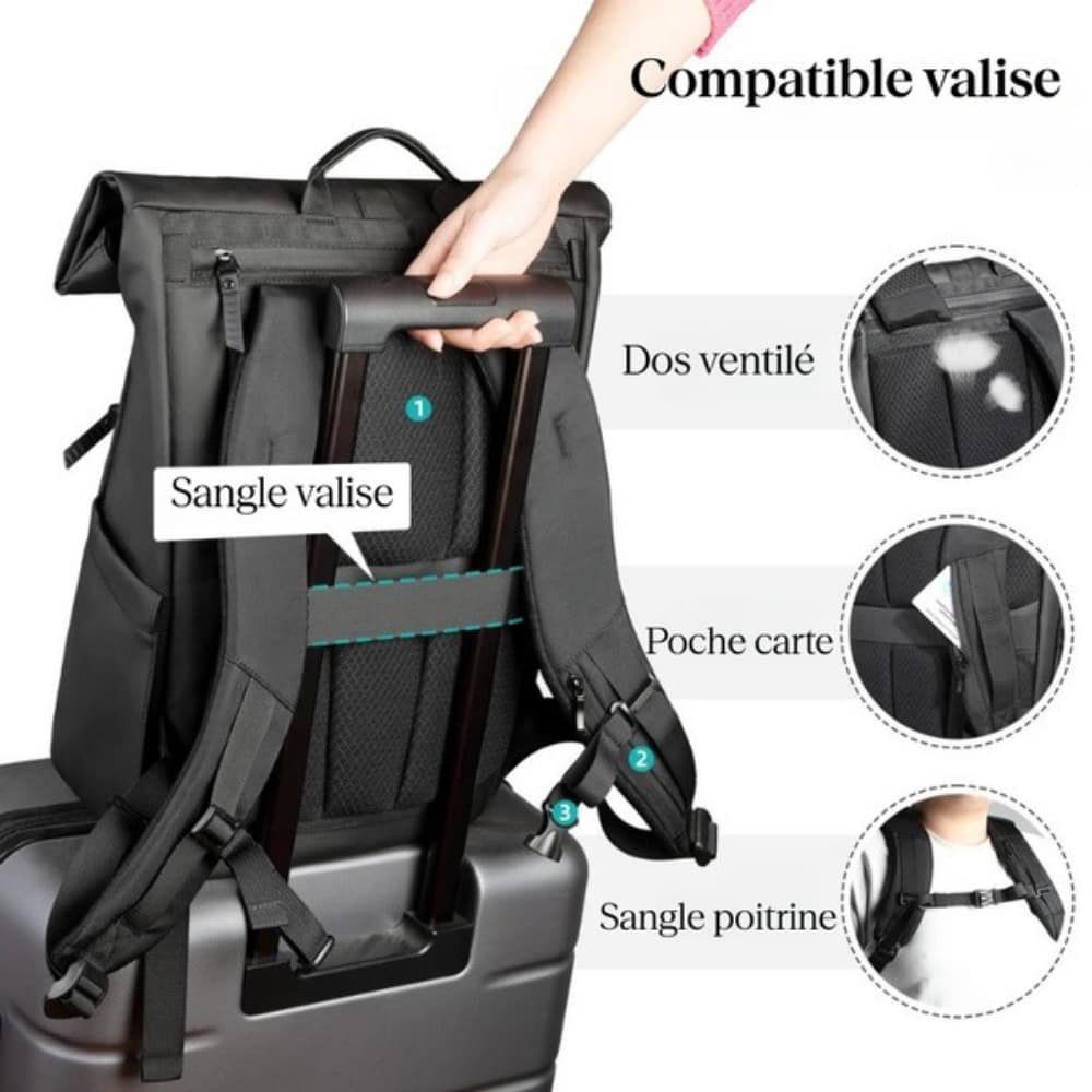 Excellent sac à dos. Beaucoup de rangement, les matériaux sont de bonne qualité, bonne aération à l'arrière. Il y a une fermeture éclair à l'arrière du sac qui vous permet d'accéder directement au sac principal, c'est super rapide.