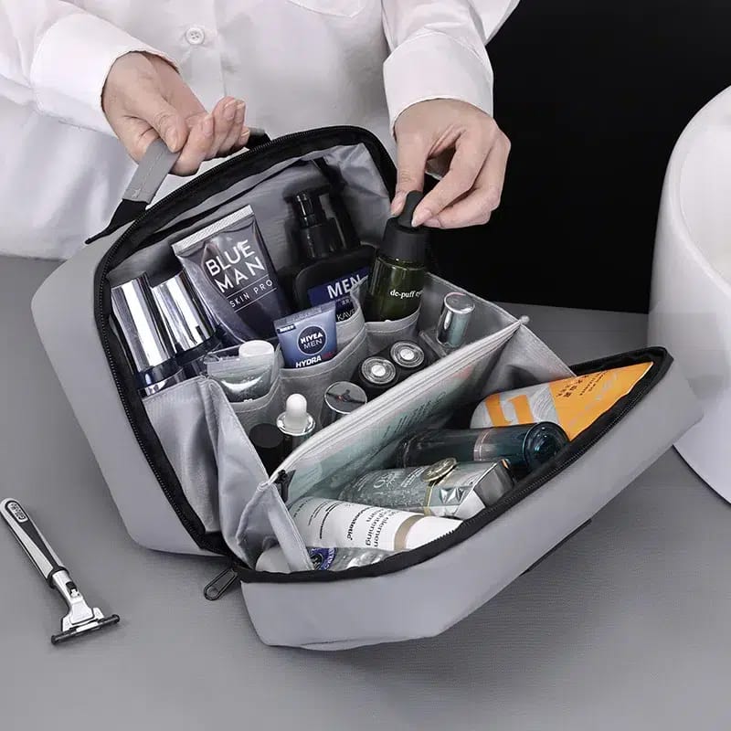 Rangez vos essentiels en toute simplicité avec la trousse de toilette avec plusieurs compartiments. Ses compartiments spacieux et poches zippées permettent de garder shampoing, lotion, crème, brosse à dents, dentifrice, rasoir et même serviette de toutes tailles, parfaitement rangés et accessibles.