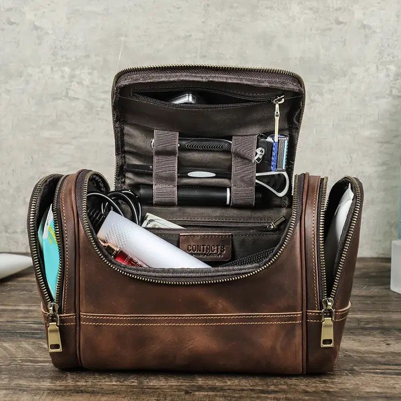 Trousse de toilette en cuir pour homme