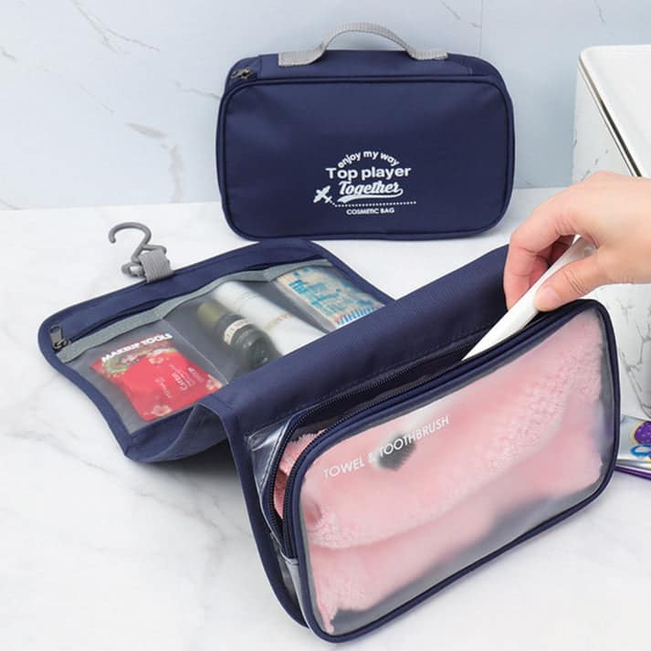 La trousse de toilette homme à suspendre se distingue par ses petites poches intégrées et compartiments indépendants. Chaque section est conçue pour vous offrir un rangement optimal : une zone dédiée aux cosmétiques, un sac en PVC pour séparer les articles humides ou secs, et des poches idéales pour les brosses à dents, rasoirs et autres produits. Cette disposition réfléchie vous permet de garder vos articles de toilette bien ordonnés et accessibles.